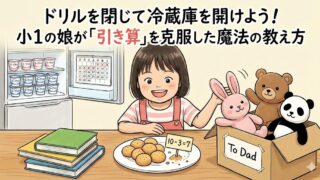 算数の「引き算」でつまずいた小1の娘。丸ボーロやぬいぐるみを使った「実体験」で、楽しく概念を理解した方法を紹介します。ドリルだけでは伝わらない家庭学習のヒントと、すぐに使える10までの練習問題付き。