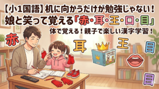 小1ドリル 【小1国語】机に向かうだけが勉強じゃない!娘と笑って覚える「赤・耳・王・口・目」