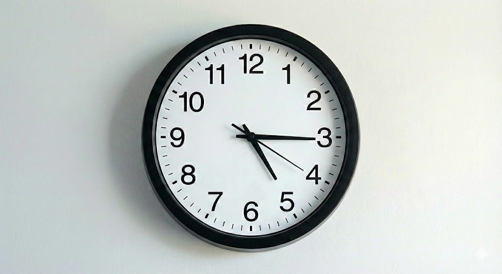 短い針が「3」、長い針が「12」を指しています。 なんじですか?