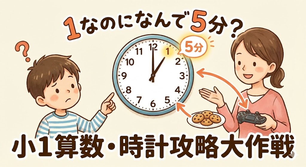小学1年生の子供が放ったこの一言に、私は絶句しました。確かにそうです。1は1。2は2。なのに、長い針がそこを指すと突然「5」や「10」に化ける。大人にとっては当たり前の「5進法的なルール」も、習いたての算数で「1+1=2」をやっている子供には、理不尽極まりないルール変更なのです。