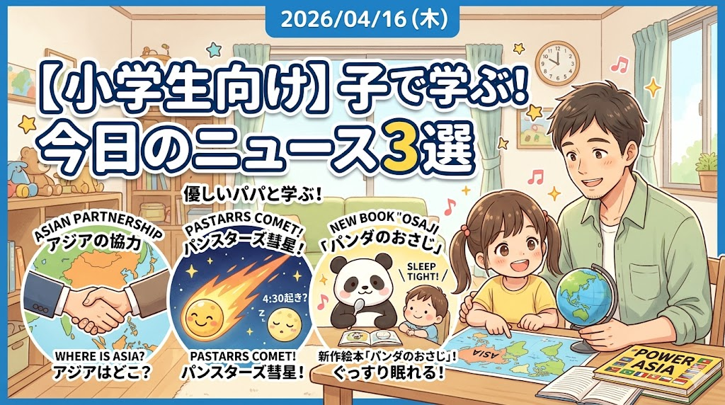 本日のニュースはいかがでしたでしょうか? 「パワーアジア」のような少し難しい話題も、「彗星」のような天体の話題も、子供の目線を通すと「地図を広げるきっかけ」になったり、「早起きの難しさ」に笑い合ったりと、親子の楽しいコミュニケーションの種になります。伴走して一緒に学ぶ時間は、私にとってもかけがえのない癒しの時間です。