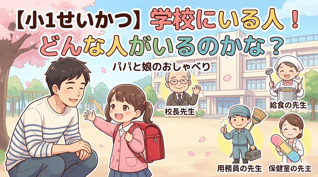 ある日の午後のこと。リビングで娘と一緒に学校のプリントや教科書のお片付けをしていると、生活科の教科書に「がっこうにいるひと」というページがあるのを見つけました。 「パパ、がっこうにはね、担任の先生のほかにも、いーっぱい大人がいるんだよ!」 得意げに教えてくれる娘と一緒に、学校にはどんな人がいて、どんなお仕事をしているのか、せいかつの勉強も兼ねておしゃべりしてみました。