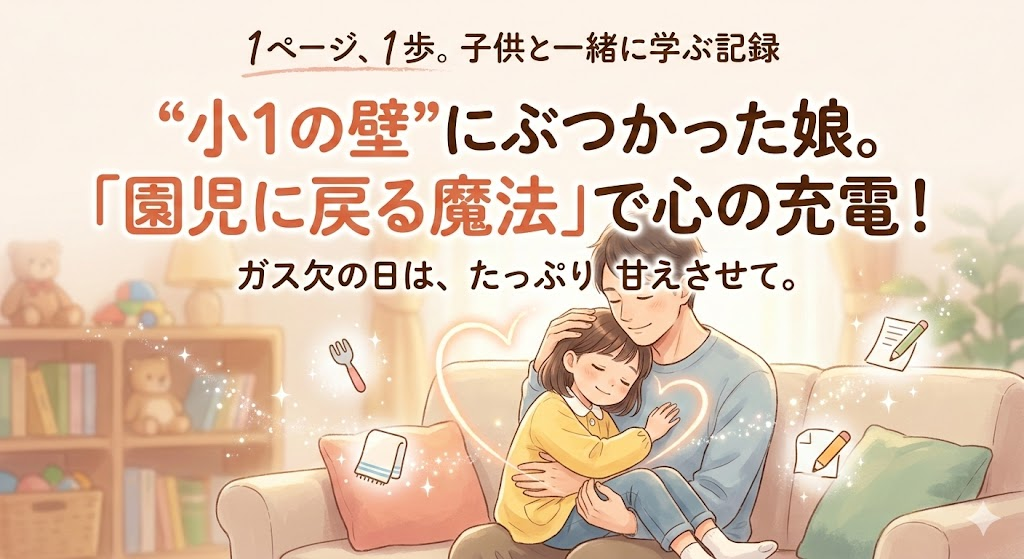 そして最後にして最大の難関、宿題のプリントです。 普段は机に向かって姿勢良くやるのがお約束。でも今日は、「1ページ、パパの膝の上」です。私がソファに座り、その上に娘を抱っこするように座らせて、後ろから包み込むようにして一緒に鉛筆を持ちました。まるで幼稚園の頃、一緒に絵本を読んでいた時のような密着感。時間はいつもの倍かかりましたが、文句を言うことなく、最後までやり遂げることができました。