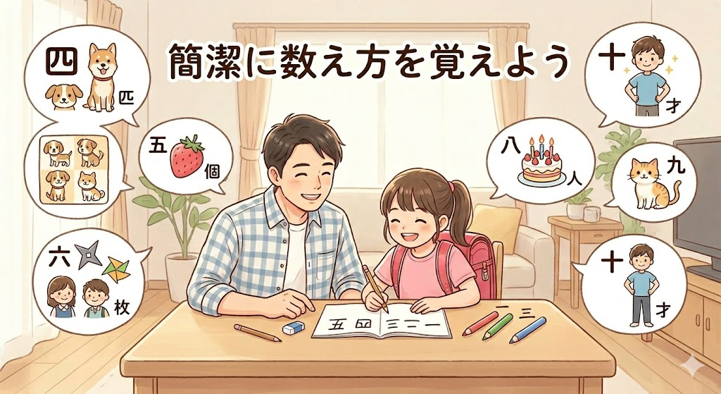 というわけで、今回は記念すべき初めての漢字学習、テーマは「一から十までの漢数字」です。 ただノートに真っ黒になるまで書いて暗記するだけじゃ、せっかくのお休みなのにちょっと退屈ですよね。ここはパパの腕の見せどころ。ただ形を覚えるだけでなく、日本語ならではの「数え方」と、娘の豊かな「想像力」をフル回転させて、遊びながら覚えてみることにしました。