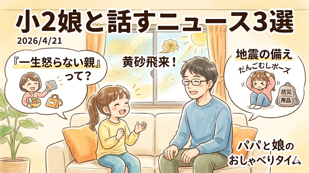 今日、2026年4月21日も、3つのニュースをテーマに娘とお話をしました。