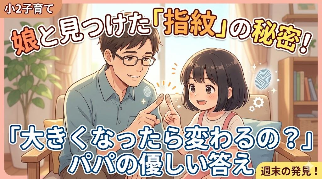 指先の小さな「ぐるぐる」から始まった、休日の親子の会話。子供の「なぜ?」「どうして?」は、いつも大人に新しい視点と、ほんの少しの成長の喜びを運んでくれます。今度の週末は、我が家はちょっとした指紋鑑定の研究所になりそうです。どんな結果が出るのか、今からパパも楽しみで仕方ありません。