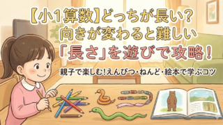 小1ドリル 【小1算数】どっちが長い?向きが変わると難しい「長さ」を遊びで攻略! 鉛筆の向きや縦横の比較に苦戦する小1の娘と、絵本や粘土などの身近な道具で「長さ」を体感!算数の苦手意識をワクワクに変える教え方のヒントをまとめました。親子で挑戦できる「ながさくらべクイズ10問」付き。 2026.02.01 小1ドリル
